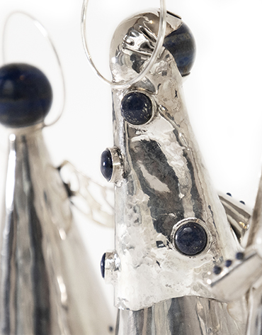 Descrição: Presépio em prata, lápis lázuli e coral branco. Medidas: Diâmetro: 8 cm Altura: 18,5 cm #BZPD09