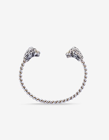 Descrição: Escravas estreitas Animalia com cabeças de Leão em prata e esmeraldas