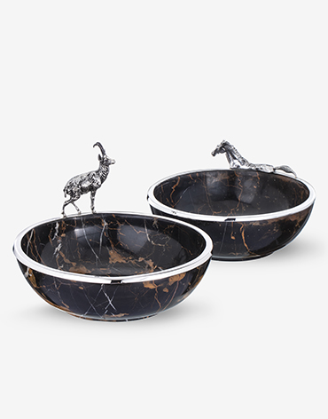 Taça em mármore com cavalo em prata (925). Olhos em granadas.