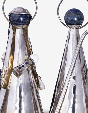 Descrição: Presépio em prata, lápis lázuli e coral branco. Medidas: Diâmetro: 8 cm Altura: 18,5 cm #BZPD09