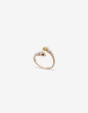 Descrição: Anel Animalia com cabeças de Cão e safiras.