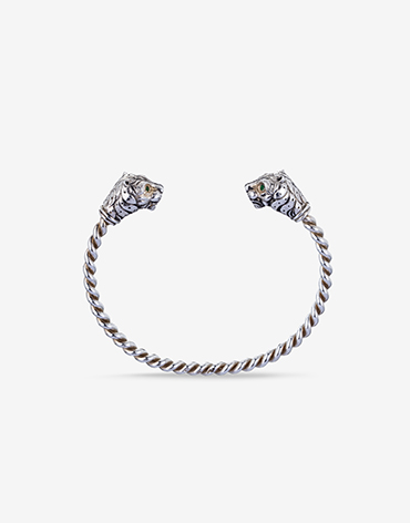 Descrição: Escravas estreitas Animalia com cabeças de Tigre em prata e esmeraldas.